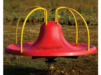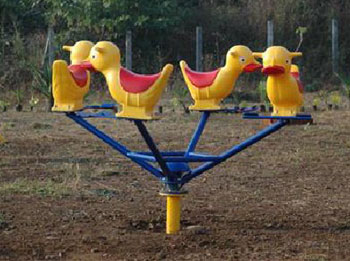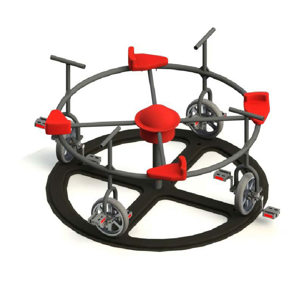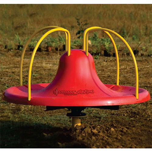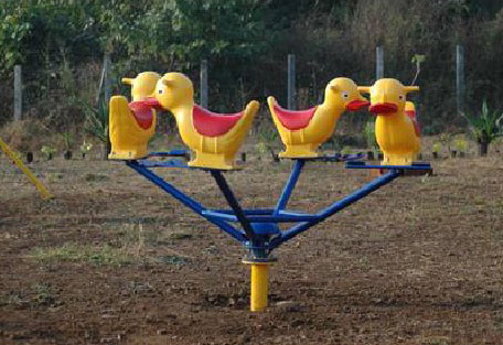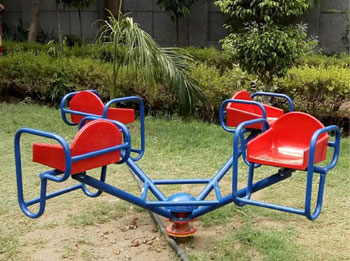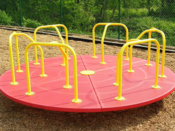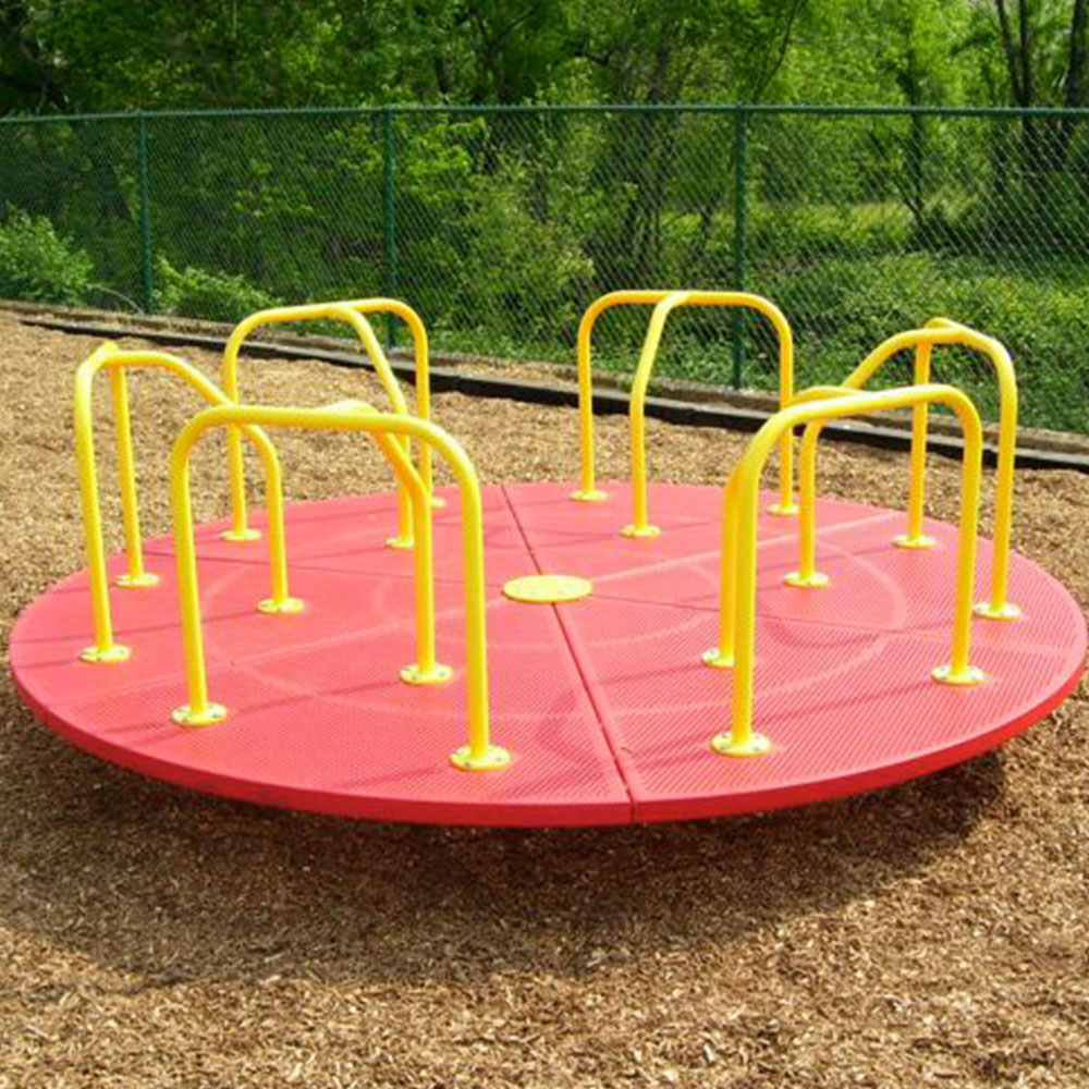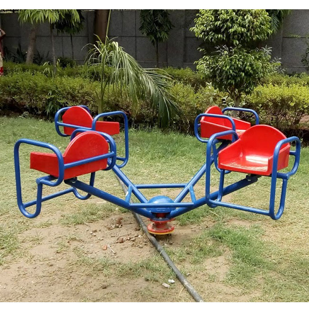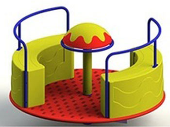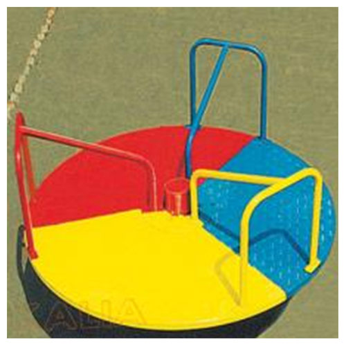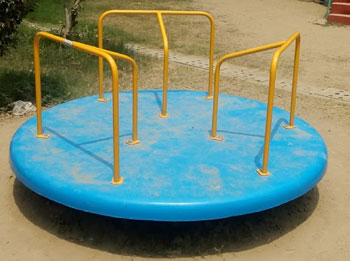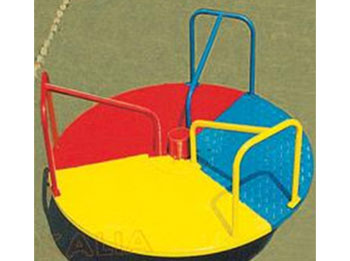A playground roundabout or merry-go-round is a flat disk, frequently about 1 to 2 mtr (3 ft 7 ft) in diameter, with bars on it that act as both hand-holds and something to lean against while riding & spinning round nd round.