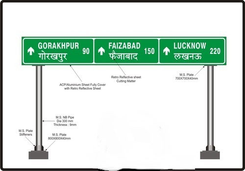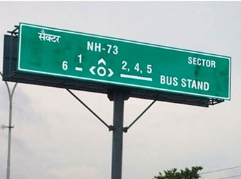 Road signs in the Republic of India are similar to those used in some parts of the Other Countries, except that they are bilingual.Most urban roads and state highways have signs in the state language and English. These retro reflective sign boards are maintenance free & helpfull for riders to access the destinations in day & night time very easily.