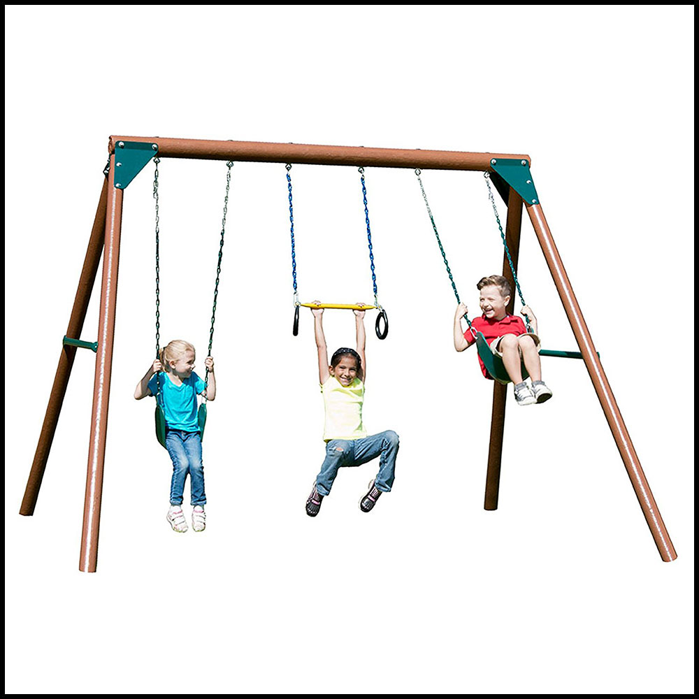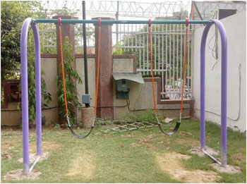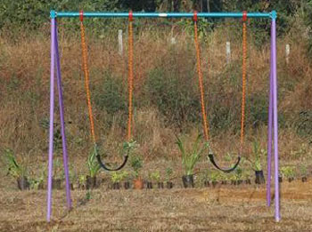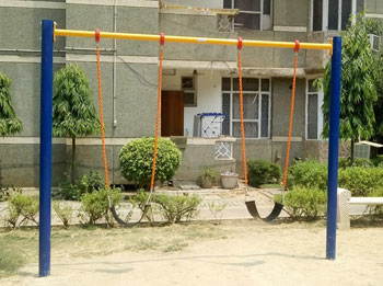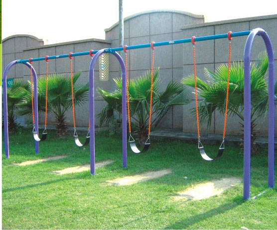 A swing is a hanging seat, often found at playgrounds for children including adults, at circus for acrobats, or on a porch for relaxing, although they may also be items of indoor furniture, such as Latin American hammock or the Indian oonjal. The seat of a swing may be suspended from chains or ropes.